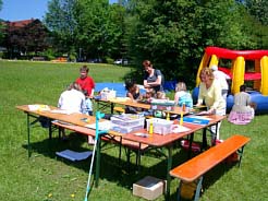 Im Angebot hatten wir unsere Kreativ- und Bastelecke, unsere Spieltische, eine Minitorwand für zukünftige Weltmeister und unsere Kleinkinderhüfpburg.