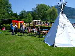 Auf dem Wiesseer Fest des Gewerbeverbandes Bad Wiessee waren wir engagiert. Ein Indianer tippi zum Anmalen spendete im Inneren etwas Schatten.